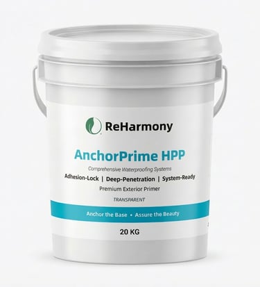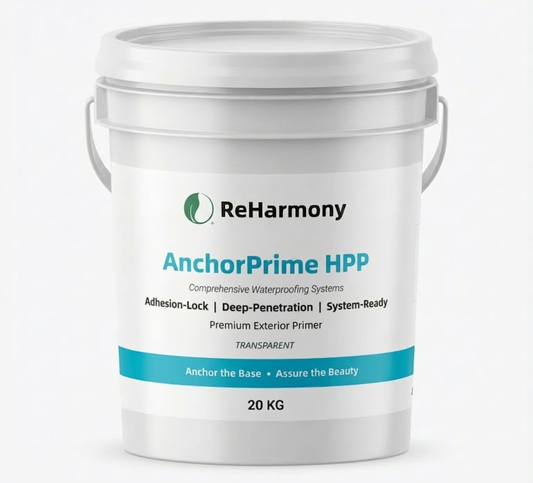 ReHarmony AnchorPrime HPP is a high-performance substrate treatment designed for roofing and wall waterproofing/plastering systems. Its unique sand-infused formula creates a rough, structural anchor profile on the substrate, dramatically enhancing the mechanical grip and bonding strength between the subsequent waterproof coating or mortar and the base.