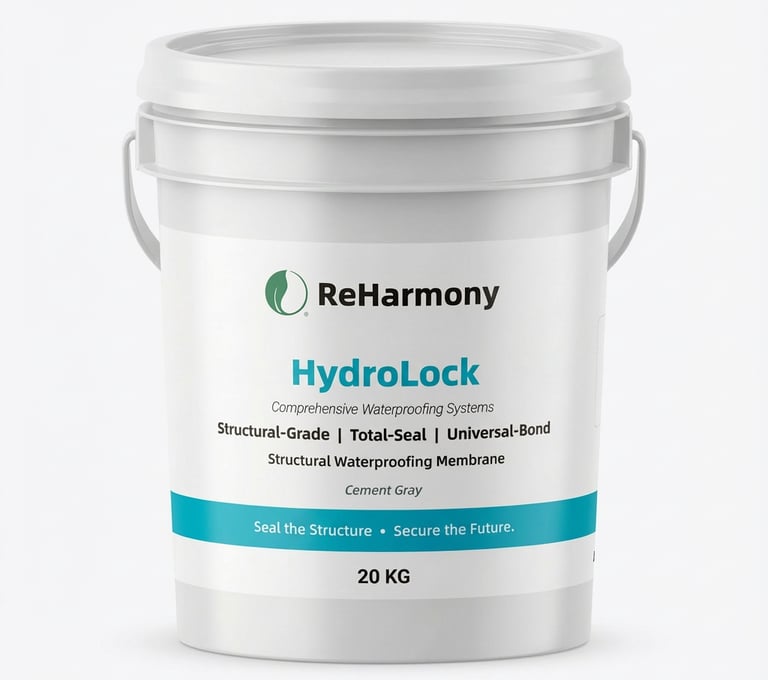 ReHarmony HydroLock is a flagship, two-component waterproofing adhesive engineered with advanced polymer technology. It is more than just a waterproof coating; it is structural armor for buildings, providing both high hardness and excellent flexibility. Its formula is designed to perfectly bond with a wide range of substrates, forming a tough, durable, and impenetrable barrier that fundamentally isolates moisture.